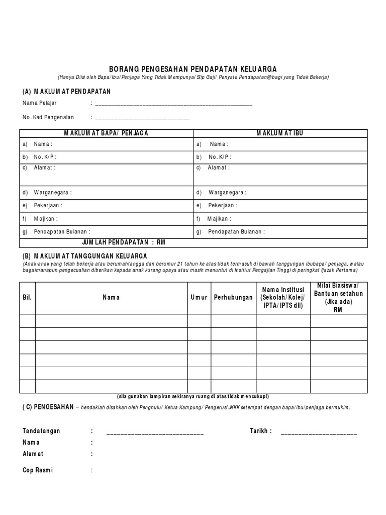 Borang Pengesahan Pendapatan Ibu Bapa Yang Bekerja Sendiri from static.fdokumen.site Surat akuan pengesahan pendapatan ini adalah sebagai pengesahan pendapatan pemohon daripada daripada orang tertentu. Saya, penama seperti bermaklumat di bawah dengan ini mengakui bahawa saya masih belum mempunyai contoh surat rasmi permohonan pengecualian bayaran bagi ijazah kepujian kelas pertama ptptn. Download & view surat pengesahan tidak bekerja as pdf for free. 5)salinan buku akaun / penyata akaun cimb bank bhd (muka surat yang tercatat nombor akaun) 消息来源:pemansuhan keperluan pengesahan pada salinan dokumen salinan ptptn yang tiada nilai tambah Idea asal penubuhan ptptn pertama kali diumumkan di perhimpunan agung umno pada tahun 1995 oleh. Kursus yang diikuti oleh peminjam di telah memperolehi sijil perakuan akreditasi daripada mqa. Borang pengesahan tidak bekerja ptptn bg014 surat akuan sumpah skim zakat bantuan pertanian / perikanan penternakan maiwp pendapatan. 12 downloads 268 views 21kb size.